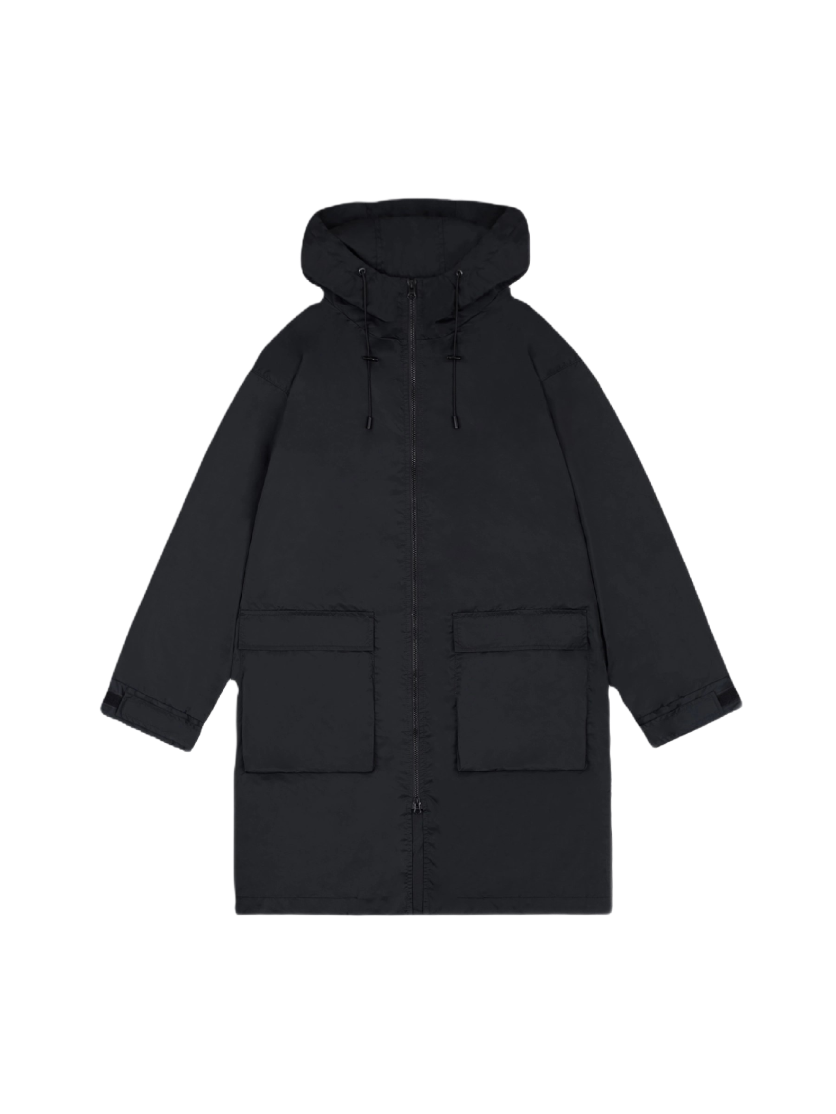 Плащ дождевик свободного кроя. Выполнен из плащевой ткани с водоотталкивающей пропиткой WR. Оснащен двумя накладными карманами. Застежка на пластиковой тракторной молнии SBS. Капюшон и низ плаща с кулиской, регулируемые манжеты на липучках.